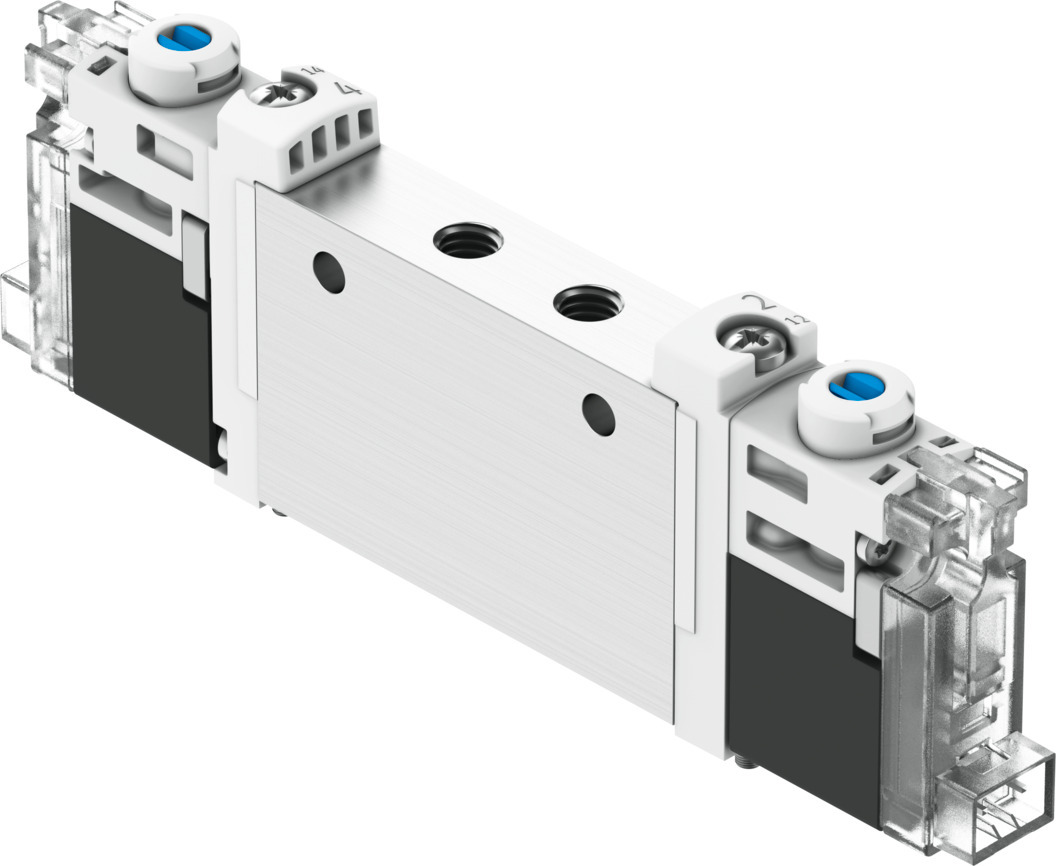 This is 2 x Two Directional Flow Pneumatic Solenoid Valve - Electrical M7 VUVG Series 24V manufactured by Festo. The manufacturer part number is VUVG-L10-T32H-AT-M7-1H2L-F1A. It performs basic function of 2 x two directional flow. It also features m7 connection port thread. The product has a vuvg manufacturer series. It also features electrical actuation. It has 24v solenoid voltage .