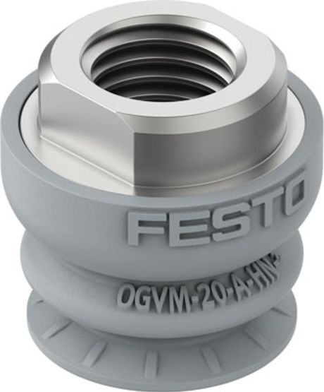 This is 20mm Bellows Vacuum Cup manufactured by Festo. The manufacturer part number is OGVM-20-A-HN-G14F. The product has a ogvm manufacturer series. Its pad diameter is about 20mm . In addition, it contains a/an bellows type pad . It has the capability to hold 18n force.