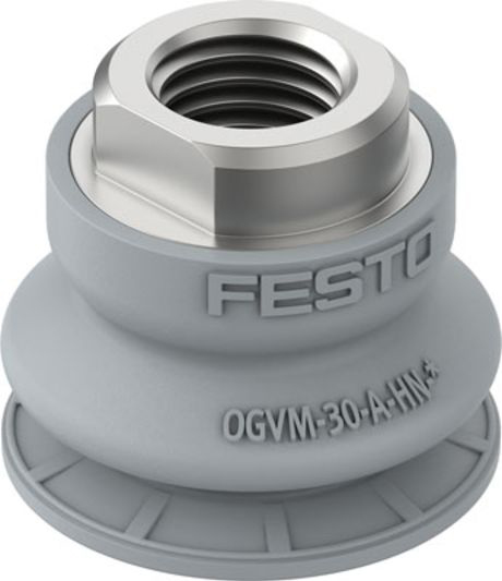 This is 30mm Bellows Vacuum Cup manufactured by Festo. The manufacturer part number is OGVM-30-A-HN-G14F. The product has a ogvm manufacturer series. Its pad diameter is about 30mm . In addition, it contains a/an bellows type pad . It has the capability to hold 37n force.