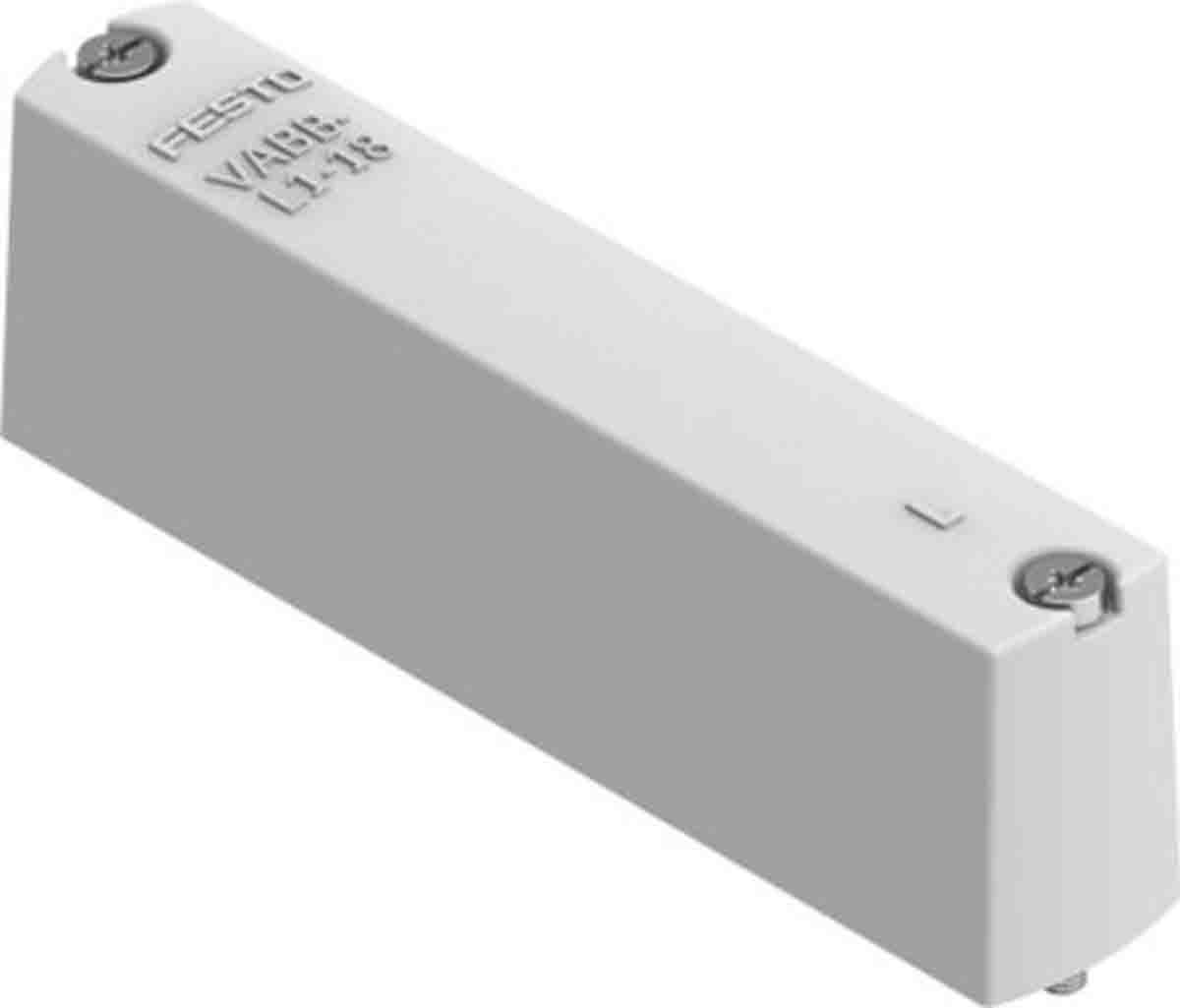 This is Blanking Plates for Pneumatic Control Valve manufactured by Festo. The manufacturer part number is VABB-L1-18. It is a type of blanking plate accessory. The product has a vabb manufacturer series.