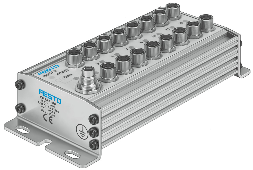 This is CP Input Module 18205 manufactured by Festo. The manufacturer part number is CP-E16-M8. It is a type of input module accessory. The product has a cp manufacturer series. It has a model number 18205.