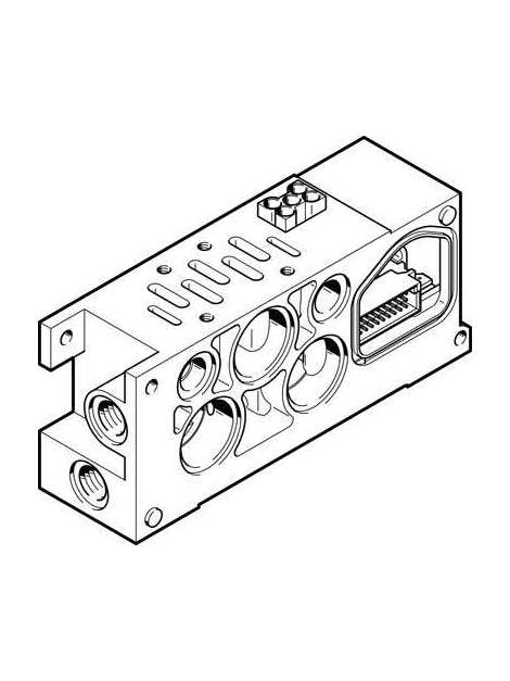 This is VIGM Manifold Block 18835 manufactured by Festo. The manufacturer part number is VIGM-04-D-3. It is a type of manifold block accessory. It has a model number 18835. The product has a vigm manufacturer series.