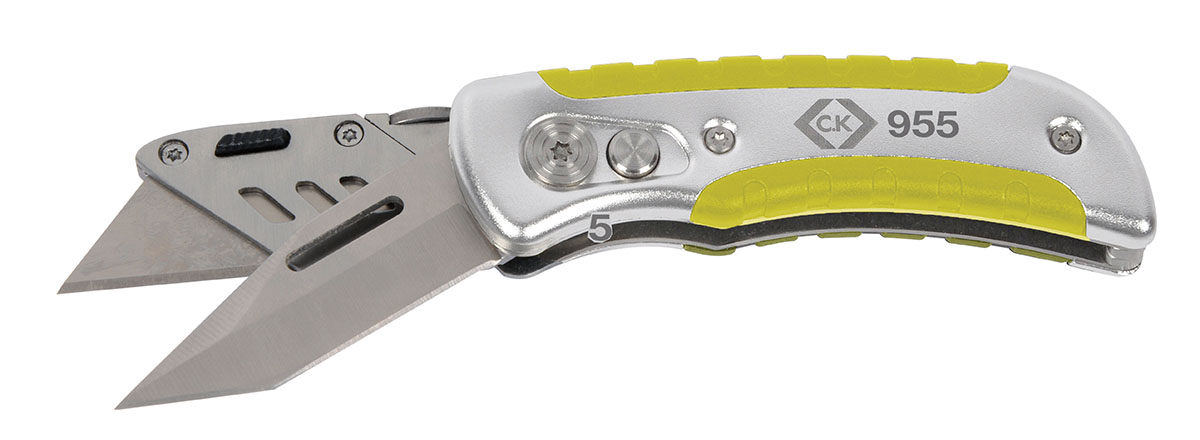 The CK T0955 is a versatile and compact folding utility knife designed for various cutting tasks in multiple applications. Its foldable design, quick blade change mechanism, and safety features make it excellent for professionals and DIY enthusiasts. With its durable construction and ergonomic handle, the CK T0955 is a valuable addition to any toolkit, offering convenience and efficiency for cutting tasks of all kinds.