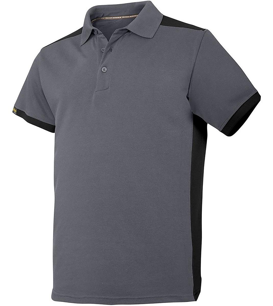 Snickers AllroundWork Grey/Black Men's Cotton, Polyester Short Sleeved Polo, UK- XL, EUR- XL