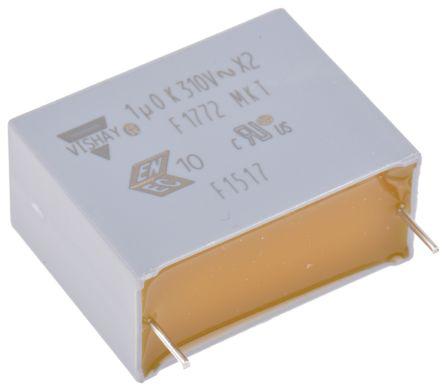 This is 1μF Polyester Film Capacitor 310V ac ±10% F1772 Series Through Hole manufactured by Vishay. The manufacturer part number is F1772-510-2000.