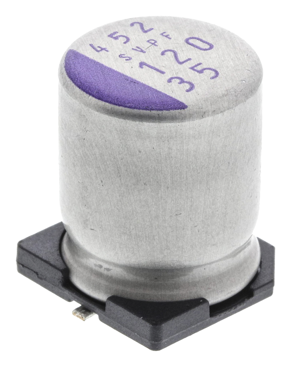 This is Aluminium Polymer Capacitor 120μF 35V dc 10mm F12 OS-CON Series Surface Mount Polymer ±20% 10 x 12.6mm manufactured by Panasonic. The manufacturer part number is 35SVPF120M. While providing polar polarity. The given dimensions of the product include 10 (dia) x 12.6 mm. It has a surface mount type mount . It provides a dissipation factor of 12%. It provides a 120μf of capacitance value. It features ±20 % of tolerance value. The product complies with automotive standard - no. polymer capacitor is a versatile product designed to provide user-defined applications. It has a maximum operating temperature of 105°c. Whereas, the minimum operating temperature of the product is -55°c. Its accurate length is 12.6mm. It harbors 840μa of leakage current. The lead features 4.6mm pitch. Concerning its package and casing, it is 400. Its diameter is 10 mm. Furthermore, 4.4a is the ripple current. The product svpf, is a highly preferred choice for users. The product comes in 10.3mm depth. In addition, the height is 12.6mm. It carries a 35 v of voltage. It is a solid electrolyte. It provides a long-lasting service for a period of 5000 h. This product use polymer technology.