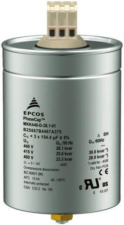 This is 69 (x3)μF Polypropylene Capacitor PP 480 V ac -5 → +10% Tolerance B25667 Series manufactured by EPCOS. The manufacturer part number is B25667C4207A375. It features a given value of +10% tolerance plus. It has board level components y . The given dimensions of the product include 116 (dia.) x 164mm. It provides a 69 (x3)µf of capacitance value. The product b25667, is a highly preferred choice for users. In addition, the height is 164mm. Applications Information involves power factor correction, tuned and detuned capacitor bank. While it has tolerance minus of -5%. It carries a 480 v ac of voltage. Whereas, the minimum operating temperature of the product is -40°c. It has a maximum operating temperature of +55°c. It features -5 → +10% of tolerance value. The terminal is a screw mount type. The dielectric options include pp.
