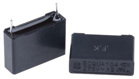 This is 100nF Polypropylene Capacitor PP 275 V ac ±10% Tolerance Through Hole ECQUA Series manufactured by Panasonic. The manufacturer part number is ECQUAAF104KA. It is a x2 suppression class. The given dimensions of the product include 17.5 x 5 x 12mm. Furthermore, the lead has 0.6mm diameter. The product ecqua, is a highly preferred choice for users. Its accurate length is 17.5mm. In addition, the height is 12mm. It provides a 100 nf of capacitance value. The product comes in 5mm depth. It carries a 275 v ac of voltage. Whereas, the minimum operating temperature of the product is -40°c. The dielectric options include plyp. The product is available in through hole configuration. The lead features 15mm pitch. It has a maximum operating temperature of +110°c. It features ±10% of tolerance value. The terminal is a through hole type.