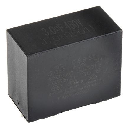 This is 3μF Polypropylene Capacitor PP 450V ac ±5% Tolerance Through Hole manufactured by RS Pro. The manufacturer part number is 843-2023. It features a given value of +5% tolerance plus. The given dimensions of the product include 36 x 14 x 29mm. The product is available in through hole configuration. It provides a 3 µf of capacitance value. It has a maximum operating temperature of +85°c. It is from film capacitor family . Its accurate length is 36mm. It provides a dissipation factor of ≤0.2%. In addition, the height is 29mm. Applications Information involves ac motor. The product comes in 18mm depth. It carries a 450 v ac of voltage. The dielectric options include polypropylene film. The lead features 32.5mm pitch. Whereas its dielectric material family is polypropylene (pp). It features ±5% of tolerance value. The terminal is a through hole type. While it has tolerance minus of -5%.