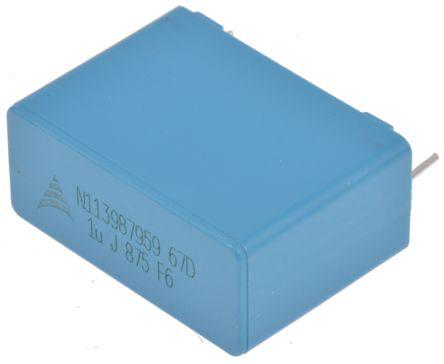 This is 1μF Polypropylene Capacitor PP 1.05 kV dc 875 V dc ±5% Tolerance B32674 Series manufactured by EPCOS. The manufacturer part number is B32674D8105J000. The given dimensions of the product include 31.5 x 13.5 x 23mm. Furthermore, the lead has 0.8mm diameter. The product b32674, is a highly preferred choice for users. It has 22.2mω equivalent series resistance. Its accurate length is 31.5mm. It provides a dissipation factor of ≤0.005 %@ 1khz. In addition, the height is 23mm. It provides a 1 µf of capacitance value. The product comes in 13.5mm depth. It carries a 1.05 kv dc, 875 v dc of voltage. Whereas, the minimum operating temperature of the product is -40°c. The lead is 6mm long. The lead features 27.5mm pitch. It has a maximum operating temperature of +105°c. It features ±5% of tolerance value. The terminal is a radial type. Whereas its dielectric material family is metallised polypropylene film.