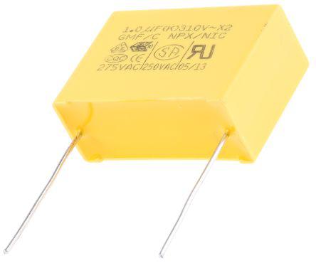 This is 1μF Polypropylene Capacitor PP 310V ac ±10% Tolerance Through Hole NPX Series manufactured by NIC Components. The manufacturer part number is NPX105K310VX2F. It is a x2 suppression class. The given dimensions of the product include 18 x 10 x 16mm. Furthermore, the lead has 0.8mm diameter. The product npx, is a highly preferred choice for users. Its accurate length is 18mm. In addition, the height is 16mm. It provides a 1 µf of capacitance value. The product comes in 10mm depth. It carries a 310 v ac of voltage. Whereas, the minimum operating temperature of the product is -40°c. The dielectric options include plyp. The product is available in through hole configuration. The lead features 15mm pitch. It has a maximum operating temperature of +100°c. It features ±10% of tolerance value. The terminal is a through hole type.