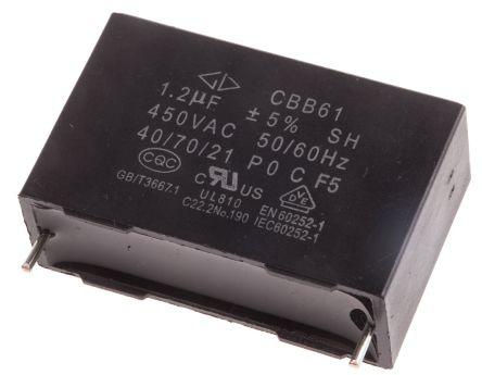 This is 1.2μF Polypropylene Capacitor PP 450V ac ±5% Tolerance Through Hole manufactured by RS Pro. The manufacturer part number is 843-2045. It features a given value of +5% tolerance plus. The given dimensions of the product include 36 x 11 x 22mm. The product is available in through hole configuration. It provides a 1.2 µf of capacitance value. It has a maximum operating temperature of +85°c. It is from film capacitor family . Its accurate length is 36mm. It provides a dissipation factor of ≤0.2%. In addition, the height is 22mm. Applications Information involves ac motor. The product comes in 11mm depth. It carries a 450 v ac of voltage. The dielectric options include polypropylene film. The lead features 32.5mm pitch. Whereas its dielectric material family is polypropylene (pp). It features ±5% of tolerance value. The terminal is a through hole type. While it has tolerance minus of -5%.