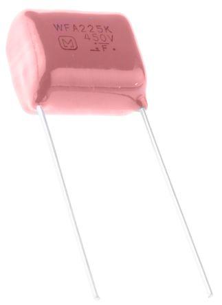 This is 2.2μF Polypropylene Capacitor PP 450V dc ±10% Tolerance Through Hole ECWF(A) Series manufactured by Panasonic. The manufacturer part number is ECWF2W225KA. It features a given value of +10% tolerance plus. The given dimensions of the product include 18.8 x 12.8 x 17.9mm. Furthermore, the lead has 0.8mm diameter. It provides a 2.2 µf of capacitance value. The product ecwf(a), is a highly preferred choice for users. Its accurate length is 18.8mm. In addition, the height is 17.9mm. Applications Information involves active filter circuit, switching power supply protection. The product comes in 12.8mm depth. It carries a 450 v dc of voltage. Whereas, the minimum operating temperature of the product is -40°c. The dielectric options include plyp. The product is available in through hole configuration. The lead features 15mm pitch. It has a maximum operating temperature of +105°c. It features ±10% of tolerance value. The terminal is a through hole type. While it has tolerance minus of -10%.