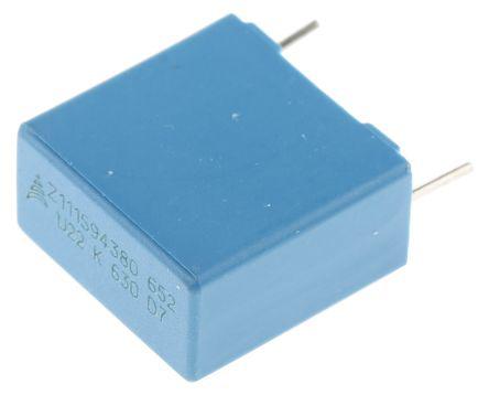 This is 220nF Polypropylene Capacitor PP 250 V ac 630 V dc ±10% Tolerance Through Hole B32652 Series manufactured by EPCOS. The manufacturer part number is B32652A6224K. It features a given value of +10% tolerance plus. The given dimensions of the product include 18 x 9 x 17.5mm. Furthermore, the lead has 0.8mm diameter. It provides a 220 nf of capacitance value. The product b32652, is a highly preferred choice for users. Its accurate length is 18mm. In addition, the height is 17.5mm. Applications Information involves electronic ballast, switching power supply. The product comes in 9mm depth. It carries a 250 v ac, 630 v dc of voltage. Whereas, the minimum operating temperature of the product is -55°c. The dielectric options include pp. The product is available in through hole configuration. The lead features 15mm pitch. It has a maximum operating temperature of +100°c. It features ±10% of tolerance value. The terminal is a through hole type. While it has tolerance minus of -10%.