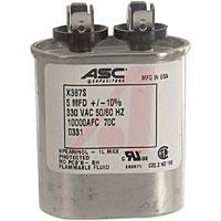 This is Capacitor Oil-Filled;5uF;Metallized Polypropy;Case A Oval;+/-10%;330VAC; manufactured by ASC. The manufacturer part number is X387S-5-10-330.