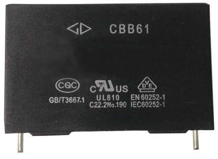 This is 1.5μF Polypropylene Capacitor PP 450V ac ±5% Tolerance Tab manufactured by RS Pro. The manufacturer part number is 843-2032. It features a given value of +5% tolerance plus. The given dimensions of the product include 37 x 13 x 22mm. The product is available in tab configuration. It provides a 1.5 µf of capacitance value. It has a maximum operating temperature of +85°c. It is from film capacitor family . Its accurate length is 37mm. It provides a dissipation factor of ≤0.2%. In addition, the height is 22mm. Applications Information involves ac motor. The product comes in 13mm depth. It carries a 450 v ac of voltage. The dielectric options include polypropylene film. The terminal is a tab type. The lead features 27mm pitch. Whereas its dielectric material family is polypropylene (pp). It features ±5% of tolerance value. While it has tolerance minus of -5%.