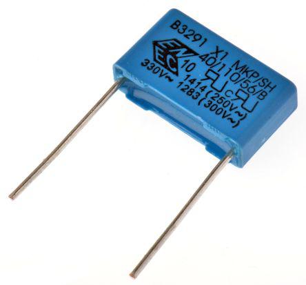 This is 22nF Polypropylene Capacitor PP 330V ac ±20% Tolerance Through Hole B32912 Series manufactured by EPCOS. The manufacturer part number is B32912A3223M189. It features a given value of +20% tolerance plus. It is a x1 suppression class. The given dimensions of the product include 18 x 5 x 10.5mm. Furthermore, the lead has 0.8mm diameter. It provides a 22 nf of capacitance value. The product b32912, is a highly preferred choice for users. Its accurate length is 18mm. In addition, the height is 10.5mm. Applications Information involves emi suppression. The product comes in 5mm depth. It carries a 330 v ac of voltage. The terminal is a through hole type. The dielectric options include plyp. The product is available in through hole configuration. The lead features 15mm pitch. It has a maximum operating temperature of +110°c. It features ±20% of tolerance value. While it has tolerance minus of -20%.