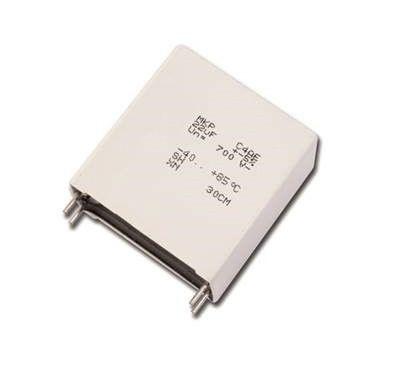 This is 1μF Polypropylene Capacitor PP 1.3kV dc ±5% Tolerance C4AQ Series manufactured by Kemet-BHC. The manufacturer part number is C4AQUBU4100A1WJ. The given dimensions of the product include 31.5 x 11 x 20mm. The lead is 6mm long. It provides a dissipation factor of 0.02%. It provides a 1 µf of capacitance value. It has an insulation resistance of 30ω . It features ±5% of tolerance value. The product complies with automotive standard - aec-q200. Whereas its dielectric material family is metallised polypropylene film. It has a maximum operating temperature of +105°c. The terminal is a radial type. It features a given value of +5% tolerance plus. Furthermore, the lead has 0.8mm diameter. Its accurate length is 31.5mm. It has 33.1mω equivalent series resistance. The lead features 27.5mm pitch. Applications Information involves automotive. The product c4aq, is a highly preferred choice for users. It is from film capacitor family . The product comes in 11mm depth. In addition, the height is 20mm. While it has tolerance minus of -5%. It carries a 1.3 kv dc of voltage. Whereas, the minimum operating temperature of the product is -40°c.