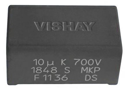 This is 20μF Polypropylene Capacitor PP 700V dc ±5% Tolerance Through Hole MKP1848S Series manufactured by Vishay. The manufacturer part number is MKP1848S62070JP2F. The given dimensions of the product include 42 x 39 x 24mm. Furthermore, the lead has 1mm diameter. The product mkp1848s dc-link, is a highly preferred choice for users. Its accurate length is 42mm. It has 6mω equivalent series resistance. In addition, the height is 24mm. It provides a 20 µf of capacitance value. The product comes in 39mm depth. It carries a 700 v dc of voltage. The dielectric options include polypropylene film. The product is available in through hole configuration. The lead features 37.5mm pitch. It has a maximum operating temperature of +85°c. It features ±5% of tolerance value. The terminal is a through hole type.