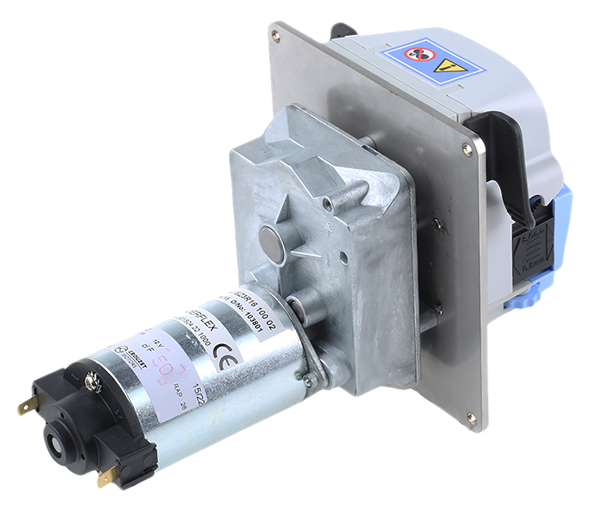 This is Peristaltic Electric Operated Positive Displacement Pump 0.375L/min 1 bar 12 V dc manufactured by Verderflex. The manufacturer part number is AU EZ3R16 100 02. It has a maximum 20m head . It has a maximum +40°c fluid temperature . It provides up to 1 bar maximum working pressure. The product ez3r1, is a highly preferred choice for users. The product features a electric drive. It exhibits 17w input power . The product provides up to 0.375l/min maximum flow rate. The product's body is nicely designed from polyamide materials. Features 12 v dc supply voltage. Its input connection size is 9.6mm . It includes a peristaltic type pump . It has a standard 9.6mm size output connection .