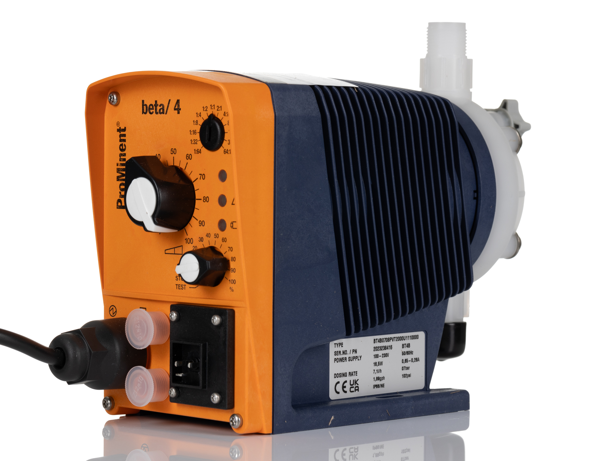 This is Electric Operated Positive Displacement Pump 7.1L/h 7 bar 100 to 230 V manufactured by ProMinent. The manufacturer part number is BT4B0708PVT2000U1110000. It has a maximum 6m head . It has pvdf wetted material . It is deployed with a 3/4 in g input connection . It has a maximum +20°c fluid temperature . It has a/an g thread output standard or connection type . It is IP rated with ip65. It provides up to 7 bar maximum working pressure. The product bt4b, is a highly preferred choice for users. The product features a electric drive. It exhibits 15.2 (consumption)w input power . The product provides up to 7.1l/h maximum flow rate. The product's body is nicely designed from pvdf materials. Features 100 → 230 v supply voltage. In addition, it has 3/4 in g output connection . Its input connection size is 3/4in . It includes a diaphragm type pump . It has a standard 3/4in size output connection . Moreover, it has a/an g thread input standard or connection type .
