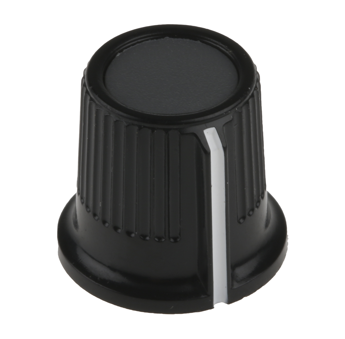 This is Potentiometer Knob Body: Black Grey for use with knob Dia. 16.2mm with a White Indicator 6mm Shaft manufactured by RS Pro. The manufacturer part number is 259-6929. Its overall knob diameter is about 16.2mm . The product is made from highly stable and reliable plastic. It contains a grub screw type knob . Additionally, the product has a circular type shaft . It is designed with white colour indicator . Its body is of black, grey colour . While the shaft's size is 6mm. Its knob is 15mm in height . The product is highly suitable for potentiometer.