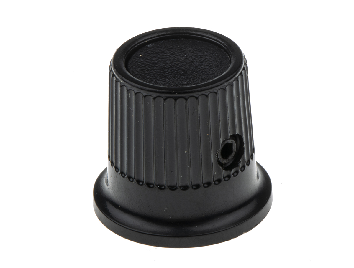 This is Potentiometer Knob Body: Black for use with knob Dia. 16.2mm with a White Indicator 6mm Shaft manufactured by RS Pro. The manufacturer part number is 259-6913. Its overall knob diameter is about 16.2mm . The product is made from highly stable and reliable plastic. It contains a grub screw type knob . Additionally, the product has a circular type shaft . It is designed with white colour indicator . Its body is of black colour . While the shaft's size is 6mm. Its knob is 15mm in height . The product is highly suitable for potentiometer.