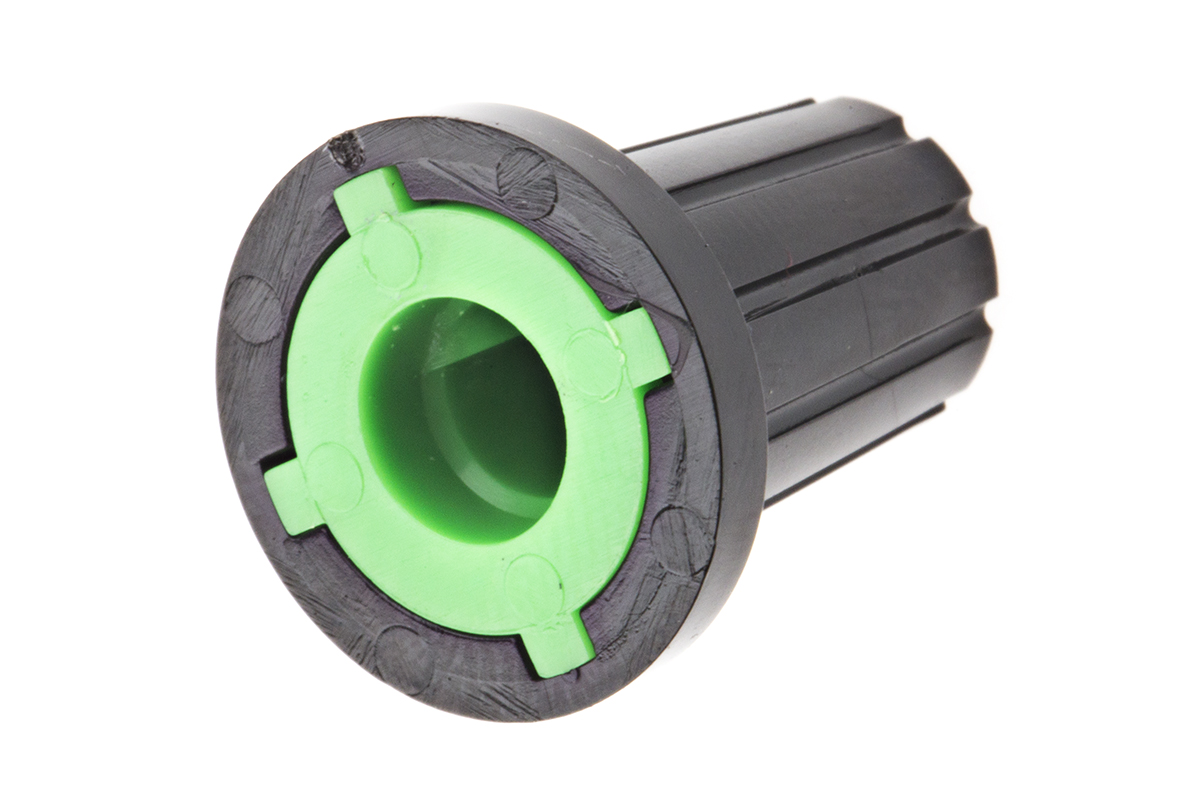 This is Potentiometer Knob Body: Black for use with knob Dia. 17mm with a Green Indicator 6mm Shaft manufactured by RS Pro. The manufacturer part number is 467-6061. Its overall knob diameter is about 17mm . The product is made from highly stable and reliable plastic. It contains a push-on type knob . Additionally, the product has a d shaped type shaft . It is designed with green colour indicator . The product comes in 15.3mm depth. Its body is of black colour . While the shaft's size is 6mm. Its knob is 19.5mm in height . The product is highly suitable for potentiometer.