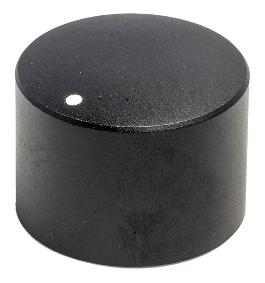 This is Potentiometer Knob Body: Black Dia. 24.8mm with a White Indicator 6mm Shaft manufactured by RS Pro. The manufacturer part number is 777-7322. Its overall knob diameter is about 24.8mm . The product is made from highly stable and reliable aluminium. It contains a push-on type knob . Additionally, the product has a splined type shaft . It is designed with white colour indicator . Its body is of black colour . While the shaft's size is 6mm. Its knob is 18.4mm in height . The product is highly suitable for potentiometer.