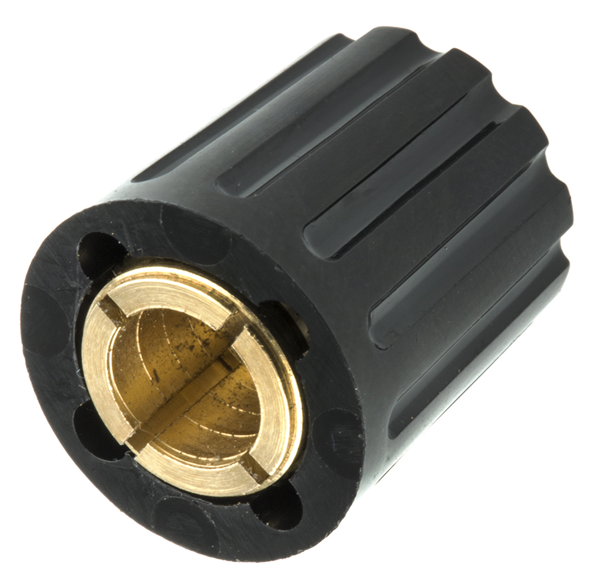 This is Collet Knob Body: Black for use with knob Dia. 14.7mm 6.4mm Shaft manufactured by RS Pro. The manufacturer part number is 463-8457. Its overall knob diameter is about 14.7mm . The product is made from highly stable and reliable plastic. It contains a collet type knob . Additionally, the product has a screw fix type shaft . Its body is of black colour . While the shaft's size is 6.4mm. Its knob is 16.2mm in height . The product is highly suitable for potentiometer.