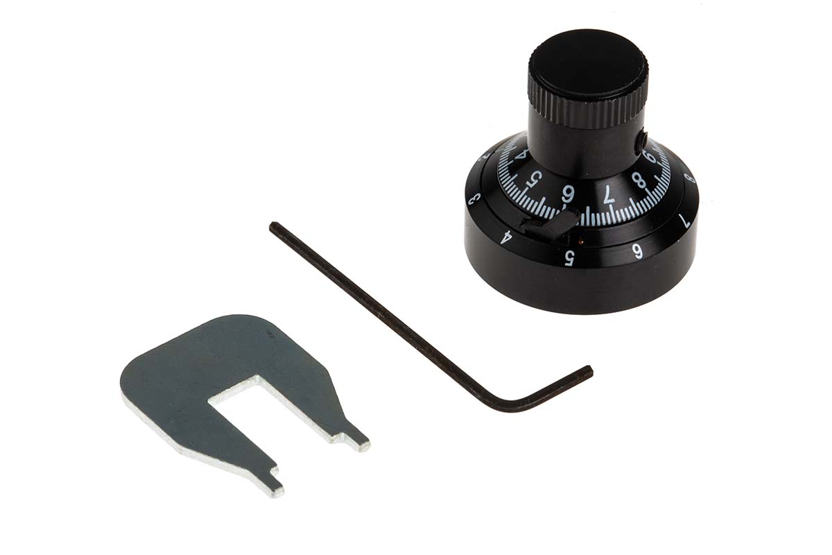 This is Potentiometer Knob Body: Black for use with knob Dia. 7.2mm 6.35mm Shaft manufactured by RS Pro. The manufacturer part number is 502-174. Its overall knob diameter is about 7.2mm . It contains a dial type knob . Additionally, the product has a circular type shaft . It is designed with black colour indicator . Its body is of black colour . While the shaft's size is 6.35mm. Its knob is 20.3mm in height . The product is highly suitable for 6.35 mm shafts.