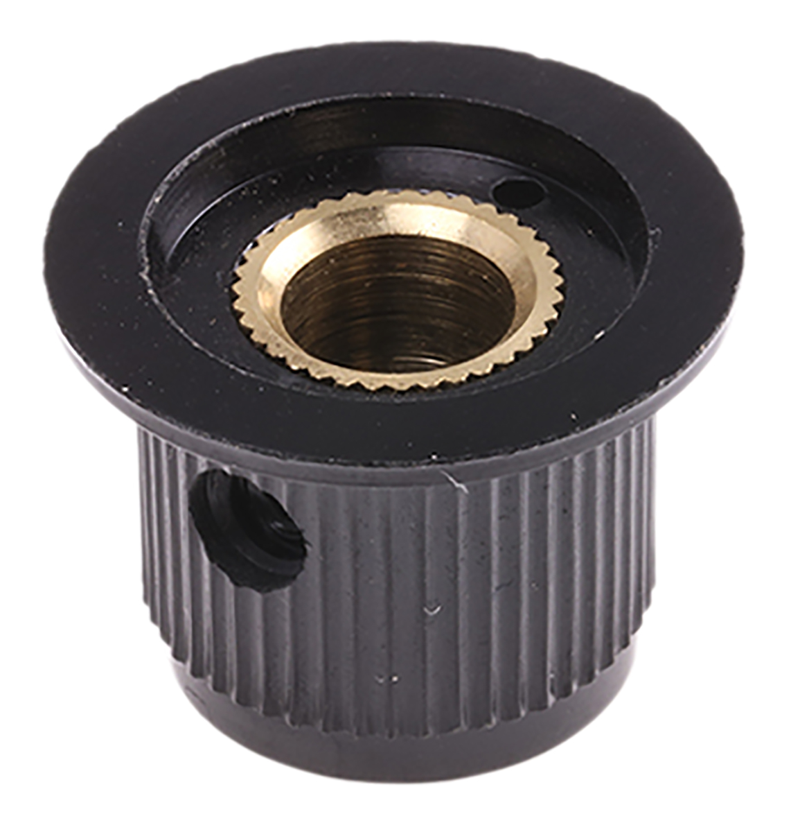 This is Pointer Knob Body: Black for use with knob Dia. 19mm with a White Indicator 6.35mm Shaft manufactured by TE Connectivity. The manufacturer part number is PK50B1/4. Its overall knob diameter is about 19mm . The product is made from highly stable and reliable phenolic. It contains a grub screw type knob . Additionally, the product has a circular type shaft . It is designed with white colour indicator . Its body is of black colour . While the shaft's size is 6.35mm. Its knob is 14mm in height . The product is highly suitable for switch.