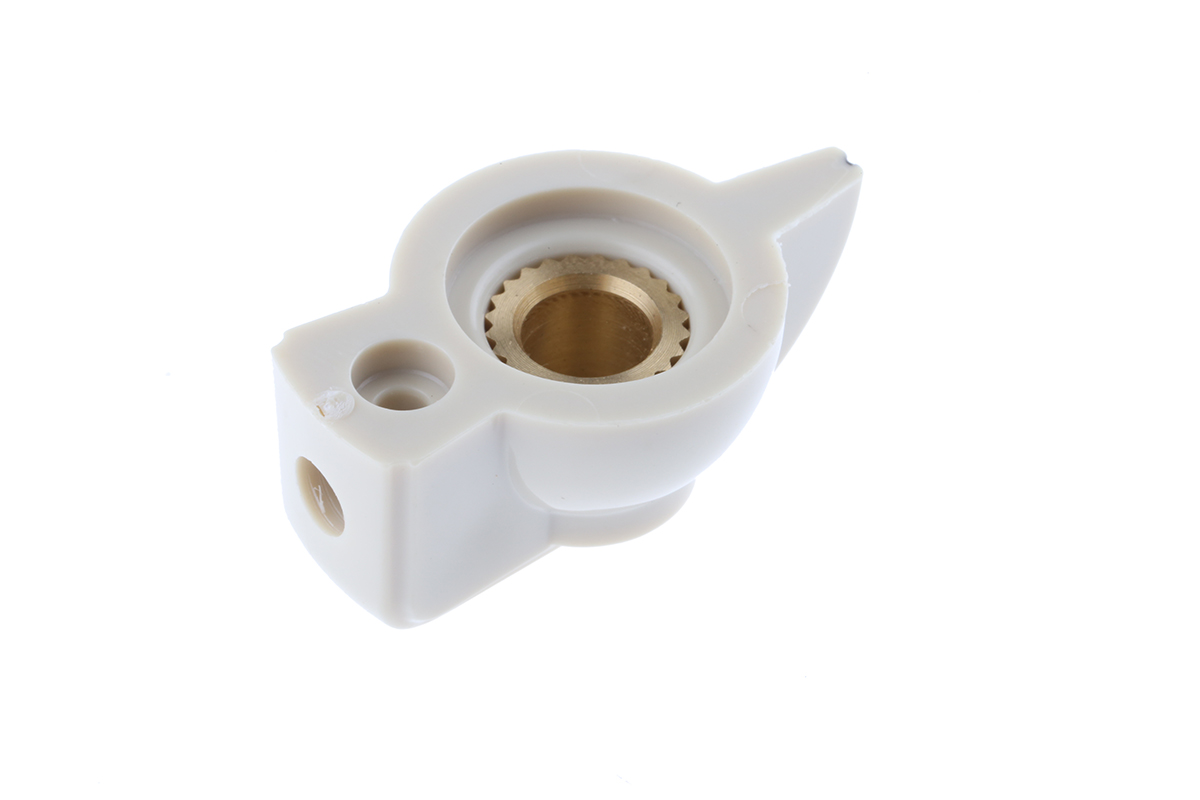 This is Pointer Knob Body: Cream for use with knob Dia. 31.95mm with a Grey Indicator 6.35mm Shaft manufactured by RS Pro. The manufacturer part number is 467-2407. Its overall knob diameter is about 32mm . The product is made from highly stable and reliable plastic. It contains a grub screw type knob . It is designed with grey colour indicator . Its body is of cream colour . While the shaft's size is 6.35mm. Its knob is 13.7mm in height . The product is highly suitable for potentiometer.