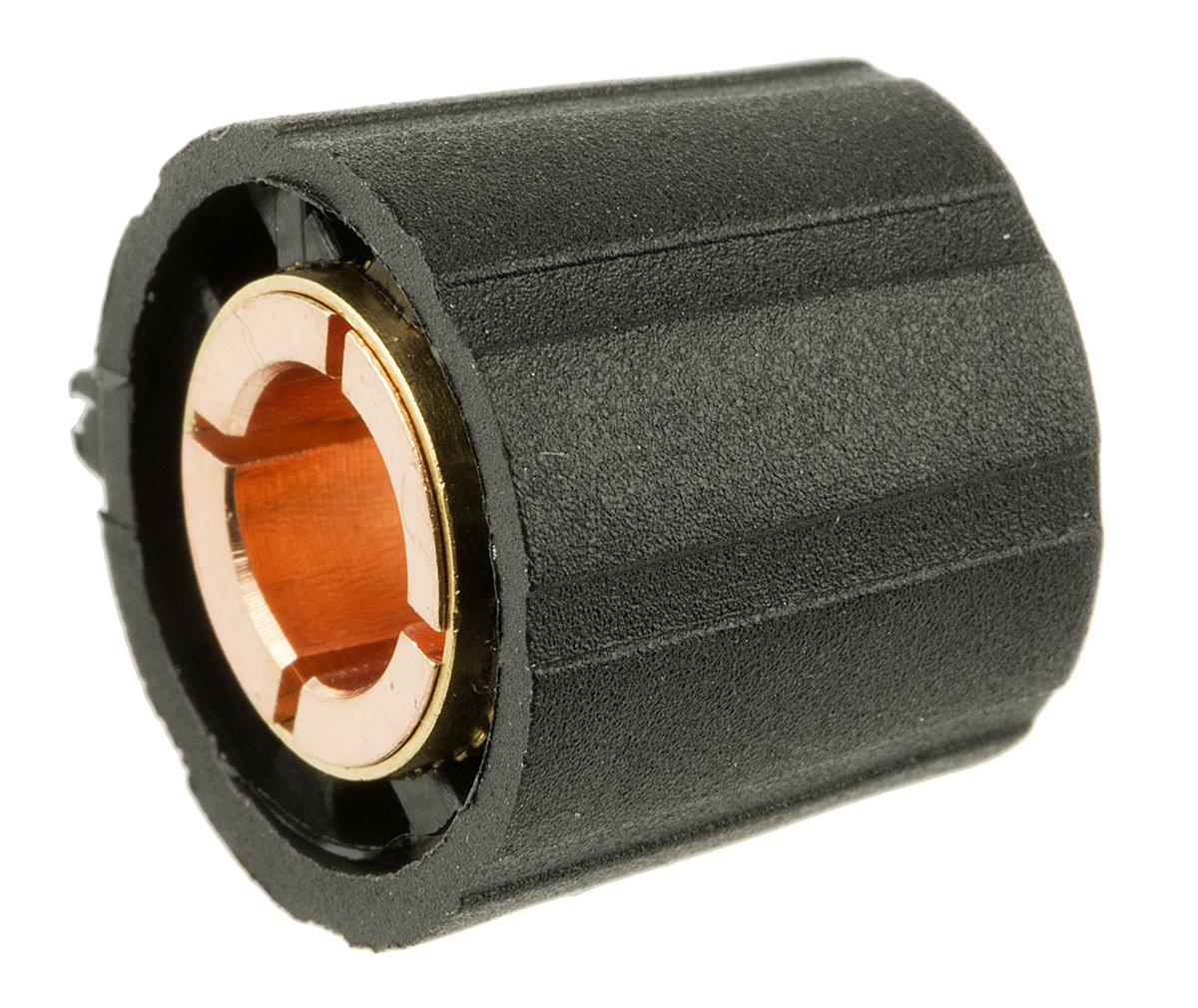This is Collet Knob Body: Black for use with knob Dia. 15mm with a Black Indicator 6mm Shaft manufactured by Sifam. The manufacturer part number is SP151 006 BLACK. Its overall knob diameter is about 15.5mm . The product is made from highly stable and reliable nylon. It contains a collet knob with line type knob . Additionally, the product has a circular type shaft . It is designed with white colour indicator . The product comes in 7mm depth. Its body is of black colour . While the shaft's size is 6mm. Its knob is 14.3mm in height .
