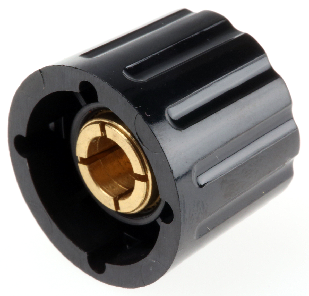 This is Potentiometer Knob Collet Type 21.3mm Knob Diameter Black 6mm Shaft manufactured by RS Pro. The manufacturer part number is 463-8508. Its overall knob diameter is about 21.3mm . It contains a collet type knob . Its body is of black colour . While the shaft's size is 6mm. Its knob is 17.1mm in height .