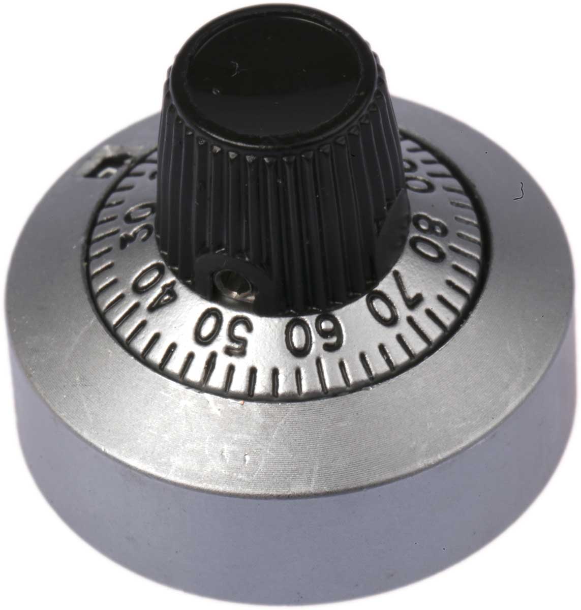 This is Potentiometer Knob Dial Type 25.4mm Knob Diameter Chrome 6.35mm Shaft manufactured by Vishay. The manufacturer part number is 11A41B010. Its overall knob diameter is about 25.4mm . The product is made from highly stable and reliable satin. It contains a dial type knob . Additionally, the product has a circular type shaft . It is designed with black colour indicator . Its body is of chrome colour . While the shaft's size is 6.35mm. Its knob is 22.2mm in height . It has a model model 11.