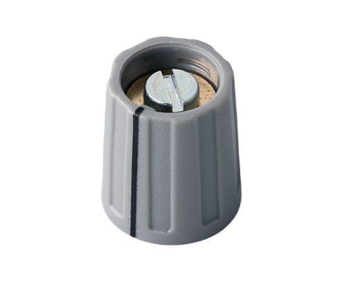 This is 13mm Grey Potentiometer Knob for 6mm Shaft Round Shaft manufactured by OKW. The manufacturer part number is A2613068. Its overall knob diameter is about 13mm . Additionally, the product has a round shaft type shaft . It is designed with black colour indicator . Its body is of grey colour . While the shaft's size is 6mm. Its knob is 15mm in height .