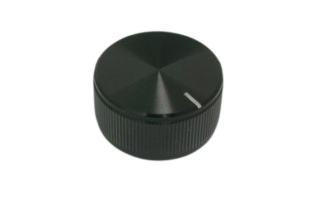 This is 32mm Black Potentiometer Knob for 6.4mm Shaft manufactured by RS PRO. The manufacturer part number is 107-860. Its overall knob diameter is about 32mm . The product is made from highly stable and reliable aluminium. It is designed with silver colour indicator . Its body is of black colour . While the shaft's size is 6.4mm. Its knob is 16mm in height .