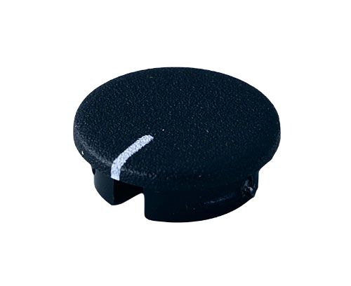 This is Black Potentiometer Knob Round Shaft manufactured by OKW. The manufacturer part number is A4113100. It is designed with white colour indicator . Its body is of black colour . Additionally, the product has a round shaft type shaft .