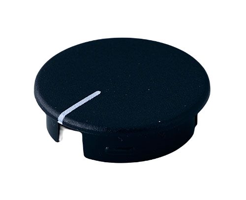 This is Black Potentiometer Knob Round Shaft manufactured by OKW. The manufacturer part number is A4120100. It is designed with white colour indicator . Its body is of black colour . Additionally, the product has a round shaft type shaft .