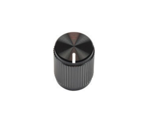 This is 12.8mm Black Potentiometer Knob for 6.35mm Shaft Round Shaft manufactured by Vishay. The manufacturer part number is ACCKMR1316NLT14. Its overall knob diameter is about 12.8mm . Additionally, the product has a round shaft type shaft . It is designed with black, white colour indicator . Its body is of black colour . While the shaft's size is 6.35mm. Its knob is 15.8mm in height .