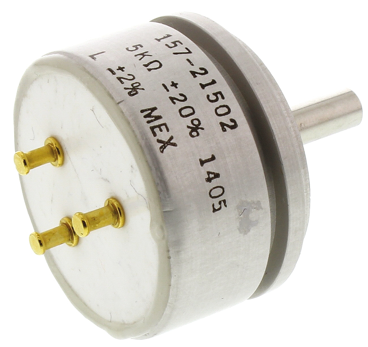 This is 157 Series Precision Potentiometer with a 3.17 mm Dia. Shaft 5kΩ ±20% 1W ±600ppm/°C Servo Mount manufactured by Vishay. The manufacturer part number is 157S502MX. The diameter of the shaft is 3.18 mm. The product is available in servo mount configuration. It includes a/an rotary type potentiometer . The product 157, is a highly preferred choice for users. Moreover, it has turret terminal style. It comprises 1 gangs. Consist of 1 turns. The shaft is 12.7mm long. The product carries round shaft actuator. It includes a/an linear electrical taper . Feature 1w of power rating. Moreover, its element is of conductive plastic material . It features ±20% of tolerance value. The product offers a maximum resistance up to 5kω.