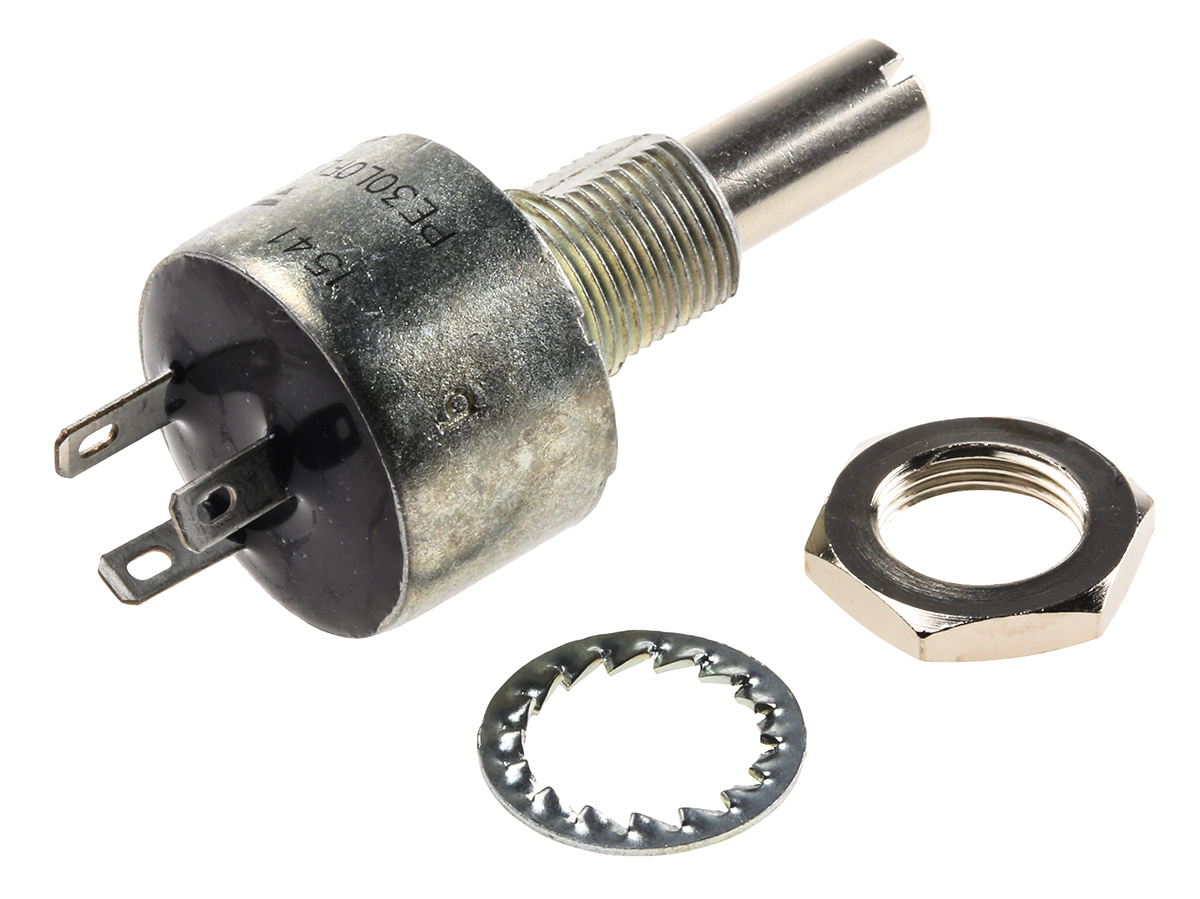 This is PE30 Series Cermet Potentiometer with a 6 mm Dia. Shaft 47kΩ ±10% 1.5W ±150ppm/°C Panel Mount manufactured by Vishay. The manufacturer part number is PE30L0FL473KLB. The diameter of the shaft is 6 mm. The product is available in panel mount configuration. It includes a/an rotary type potentiometer . The product pe30, is a highly preferred choice for users. Moreover, it has solder lug terminal style. It comprises 1 gangs. Consist of 1 turns. The shaft is 25mm long. The product carries slotted shaft actuator. It includes a/an logarithmic electrical taper . Feature 1.5w of power rating. Moreover, its element is of cermet material . It features ±10% of tolerance value. The product offers a maximum resistance up to 47kω.