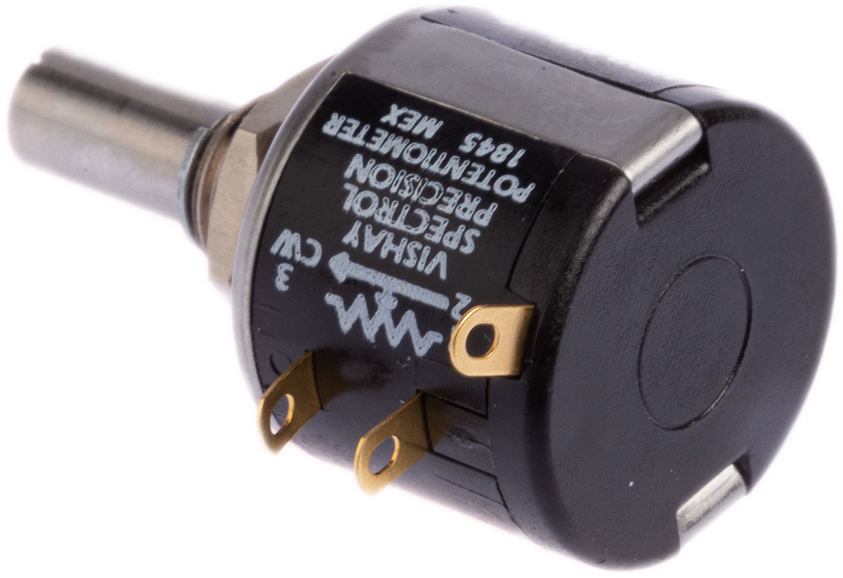 7/8 in. 10 Turn 534 Series Potentiometers A comprehensive selection of 7/8 inch (22.2 mm) 10 turn, 534 series linear panel mount potentiometers from Vishay. This potentiometer range features 100 Ω to 100 kΩ versions with 2W power handling, and 5% tolerance. These durable 534 Series potentiometers are rated at one million lifecycles and are suitable for industrial control applications, medical instruments, wire cutting machines, and welding machines. Features and Benefits: Wirewound element Stainless steel end slotted shaft Bushing mount design, sleeve bearing type Wide range available 100 Ω to 100 kΩ resistance Ten turns, with 5% tolerance 2W power rating Dual gang configuration and concentric shafts Supplied with metal lock washer and nut Resistance tolerance ± 5% Linearity (Independent) ± 0.2% Temperature coefficient (Wire only) 20ppm/ °C Insulation resistance @500V d.c 1000MOhm Dielectric strength 1000V r.m.s Rotational life 1 million shaft revolutions Starting torque (max) 0·5 oz-in (36 gcm) Operating temperature range -55°C → 125°C Dimensions body: Ø 22·22 L. 19·1 Imperial shaft Ø 6·35 L.20·6mm (inc. bush) Metric shaft Ø 6·00 L.20·6mm (inc. bush) Precision - Multi-Turn and Servo