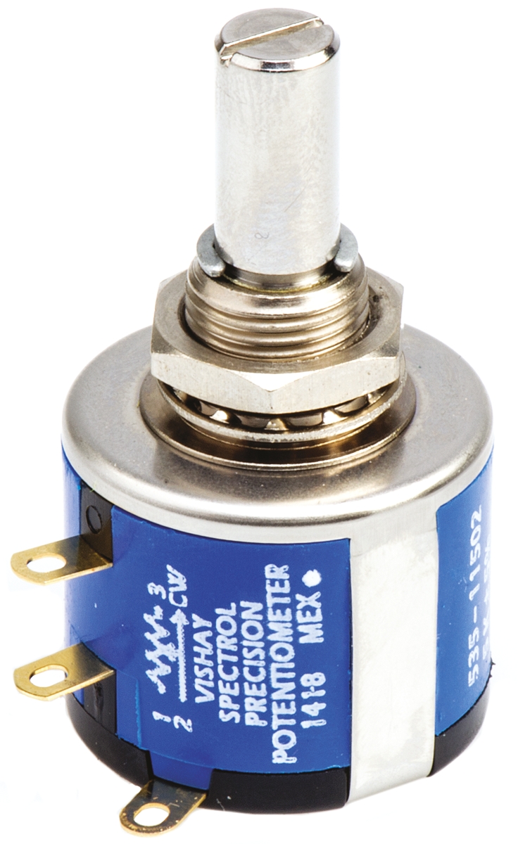 This is 535 Series Wirewound Potentiometer with a 6.35 mm Dia. Shaft 5-Turn 5kΩ ±5% 1.5W ±20ppm/°C Panel Mount manufactured by Vishay. The manufacturer part number is 535B1502JC. The diameter of the shaft is 6.35 mm. The product is available in panel mount configuration. It includes a/an rotary type potentiometer . The product 535, is a highly preferred choice for users. Moreover, it has solder lug terminal style. It comprises 1 gangs. Consist of 5 turns. The shaft is 22.2mm long. The product carries slotted shaft actuator. It includes a/an linear electrical taper . Feature 1.5w of power rating. Moreover, its element is of wirewound material . It features ±5% of tolerance value. The product offers a maximum resistance up to 5kω.