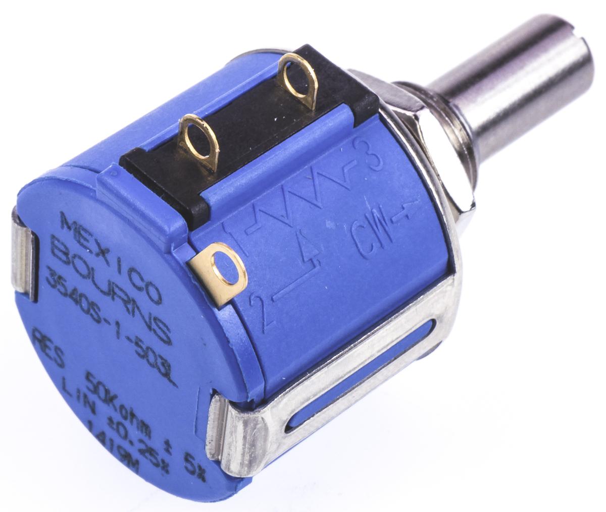 This is 3540S Series Wirewound Potentiometer with a 6.35 mm Dia. Shaft 10-Turn 50kΩ ±5% 2W ±50ppm/°C manufactured by Bourns. The manufacturer part number is 3540S-1-503L. The diameter of the shaft is 6.35 mm. The product is available in panel mount configuration. It includes a/an rotary type potentiometer . The product 3540, is a highly preferred choice for users. Moreover, it has solder lug terminal style. It comprises 1 gangs. Consist of 10 turns. The shaft is 20.6mm long. The product carries slotted shaft actuator. It includes a/an linear electrical taper . Feature 2w of power rating. Moreover, its element is of wirewound material . It features ±5% of tolerance value. The product offers a maximum resistance up to 50kω.