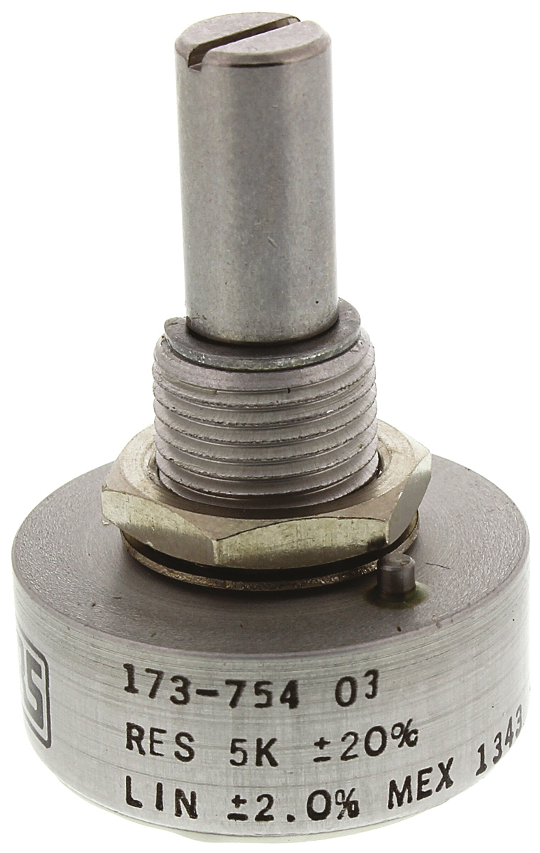 This is 157 Series Conductive Plastic Potentiometer with a 6.35 mm Dia. Shaft 5kΩ ±20% 1W ±600ppm/°C Panel Mount manufactured by Vishay. The manufacturer part number is 157B502MX9001. The diameter of the shaft is 6.35 mm. The product is available in panel mount configuration. It includes a/an rotary type potentiometer . The product 157, is a highly preferred choice for users. Moreover, it has turret terminal style. It comprises 1 gangs. Consist of 1 turns. The shaft is 22.2mm long. The product carries round shaft actuator. It includes a/an linear electrical taper . Feature 1w of power rating. Moreover, its element is of conductive plastic material . It features ±20% of tolerance value. The product offers a maximum resistance up to 5kω.