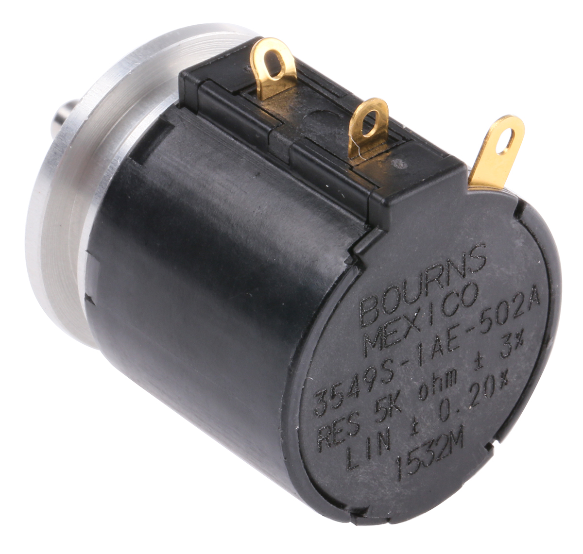 This is 3549 Series Wirewound Potentiometer with a 3.17 mm Dia. Shaft 10-Turn 5kΩ ±3% 2W ±50ppm/°C Servo Mount manufactured by Bourns. The manufacturer part number is 3549S-1AE-502A. The diameter of the shaft is 3.18 mm. The product is available in servo mount configuration. It includes a/an rotary type potentiometer . The product 3549, is a highly preferred choice for users. Moreover, it has solder lug terminal style. It comprises 1 gangs. Consist of 10 turns. The shaft is 9.5mm long. The product carries slotted shaft actuator. It includes a/an linear electrical taper . Feature 2w of power rating. Moreover, its element is of wirewound material . It features ±3% of tolerance value. The product offers a maximum resistance up to 5kω.