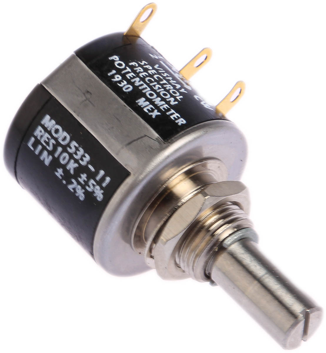 This is 533 Series Wirewound Potentiometer with a 6.35 mm Dia. Shaft 3-Turn 10kΩ ±5% 1W ±20ppm/°C Panel Mount manufactured by Vishay. The manufacturer part number is 533B1103JL. The diameter of the shaft is 6.35 mm. The product is available in panel mount configuration. It includes a/an rotary type potentiometer . The product 533, is a highly preferred choice for users. Moreover, it has solder lug terminal style. It comprises 1 gangs. Consist of 3 turns. The shaft is 22.2mm long. The product carries slotted shaft actuator. It includes a/an linear electrical taper . Feature 1w of power rating. Moreover, its element is of wirewound material . It features ±5% of tolerance value. The product offers a maximum resistance up to 10kω.