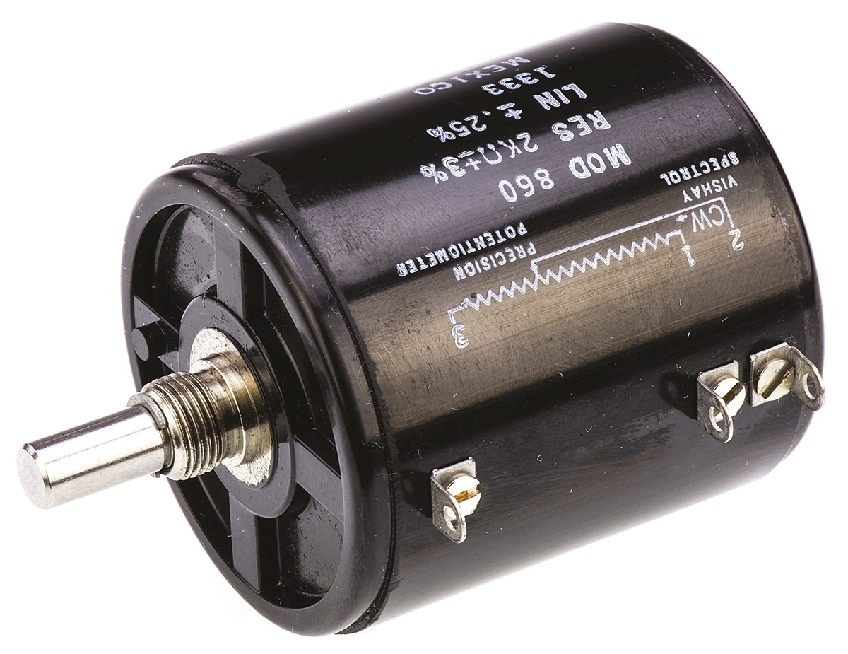 This is 860 Series Wirewound Potentiometer with a 6.35 mm Dia. Shaft 10-Turn 2kΩ ±1% 8W ±110ppm/°C Panel Mount manufactured by Vishay. The manufacturer part number is 860B1202. The diameter of the shaft is 6.35 mm. The product is available in panel mount configuration. It includes a/an rotary type potentiometer . The product 860, is a highly preferred choice for users. Moreover, it has solder lug terminal style. It comprises 1 gangs. Consist of 10 turns. The shaft is 20.6mm long. The product carries round shaft actuator. It includes a/an linear electrical taper . Feature 8w of power rating. Moreover, its element is of wirewound material . It features ±1% of tolerance value. The product offers a maximum resistance up to 2kω.